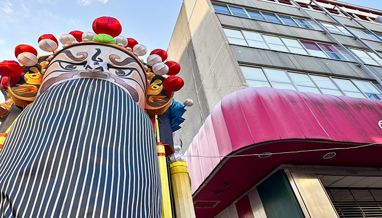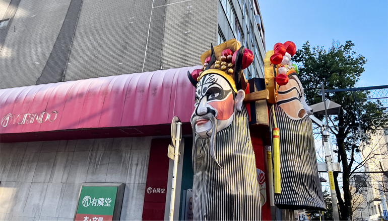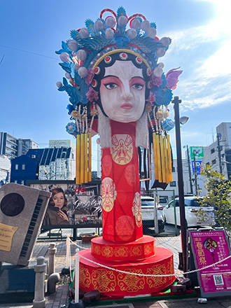 おなじみの有隣堂前など2ヵ所に、京劇の隈取(くまどり)が描かれた巨大な「三面柱」が設置されています。